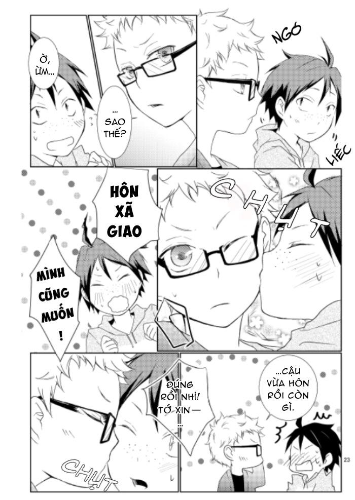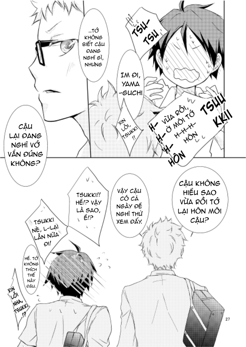 Mình hôn nhau say đắm được không?” trích từ djs 4 CP “Kiss Kiss Kiss” của tác giả gồm KageHina, IwaOi, Kindaichi x Kunimi (tui không biết tên viết tắt của shipdom 🥲) và TsukiYama. Tui chỉ dịch của TsukiYama thui nha, bản dịch Anh cung cấp bởi Team Milk Boy chưa được ra mắt, hàng nội bộ đó :)))))) Tất nhiên tui đã có per của nhà scan rùi nha 💖